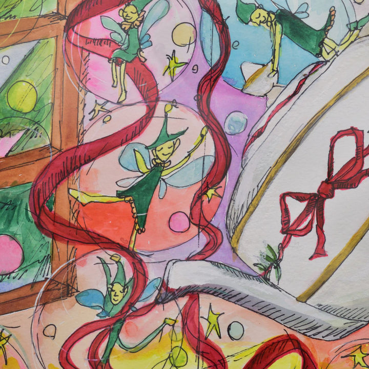 『ホーリーリボンのときめく午後──リボンの妖精がくれた冬のやさしさ──』をモチーフに描かれたアートです。